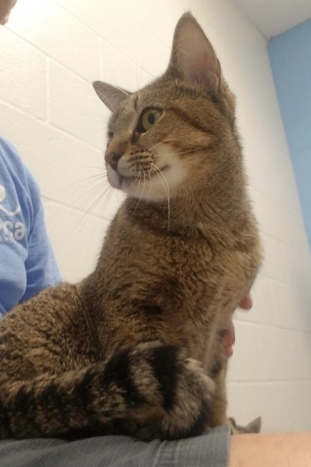 This girl came to me as soon as I walked in. She got on my lap and purred up a storm. I was a bit concerned because she was practically skin and bones. When one of the shelter employees saw this she said, “Wow, Mama Girl is coming out of her shell.” This surprised me for two reasons. First, out of several cats in the pod, this one seemed the most outgoing and affectionate. Second, I thought she was still a kitten. How could she be a mother? I was told she was about a year old and had already had a litter of kittens.
