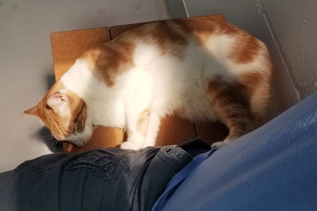 One of the maintenance guys from the property came to our house on Saturday to help install two new windows in our house and I give him one of our carriers so they could take him in to be neutered.