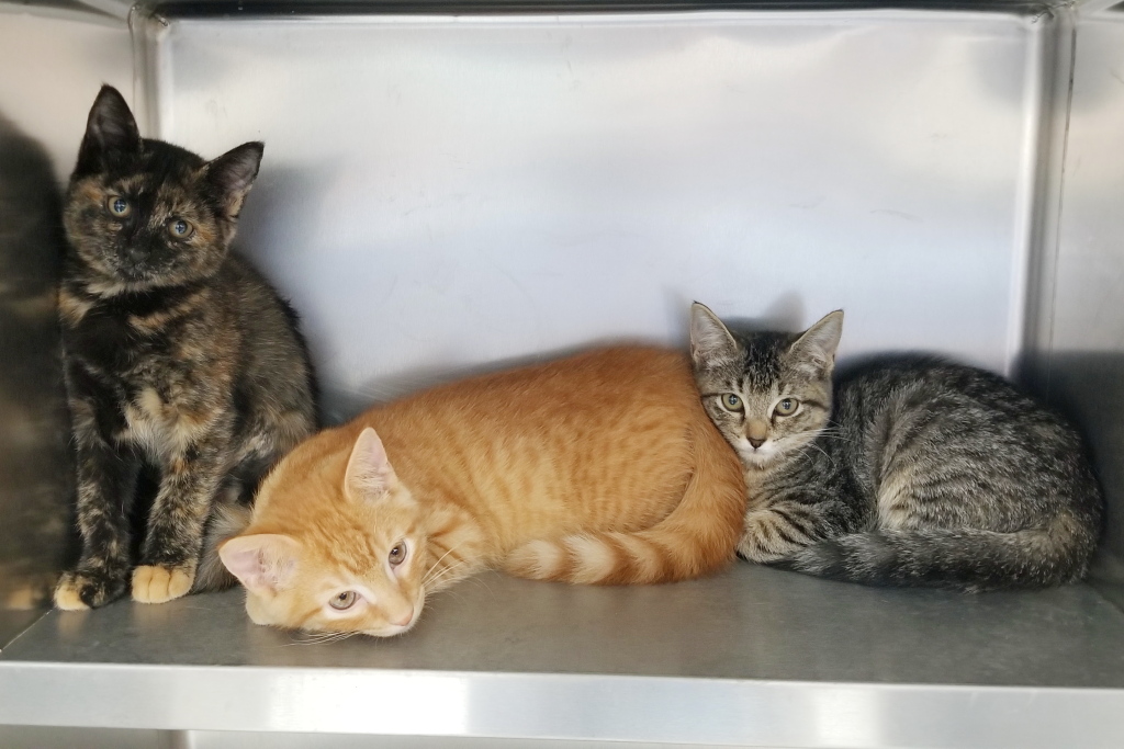 Then there was three kittens together in one cage, a ginger boy and two females including one tabby and one tortie.
