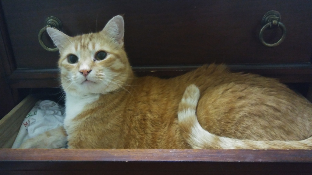 I had estimated Chris to be about six months old when we adopted him, so I always celebrated his birthday on May 14, but I need to reevaluate that. Now that I think about it, I remember him being listed as five months old when I first met him, but a lot of time elapsed between that first meeting and when we adopted him on the fourteenth of November. It seemed like a month but the earliest photo I have of him is from early October and that was at least a week, maybe more after I met him. Also, I don’t know how much time had elapsed since someone wrote his age on his pen at PetSmart.
