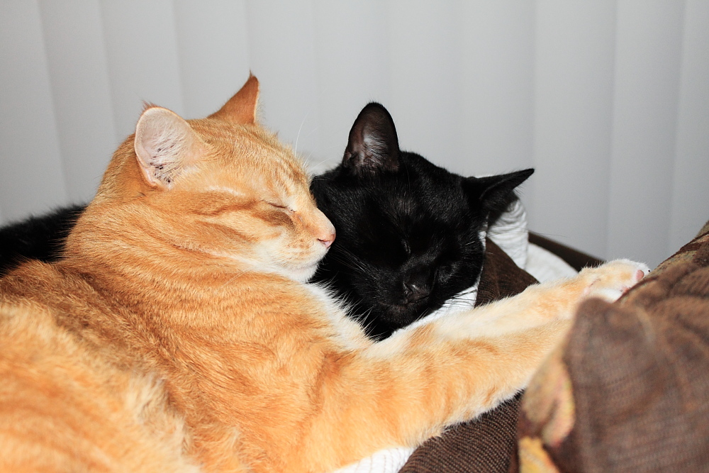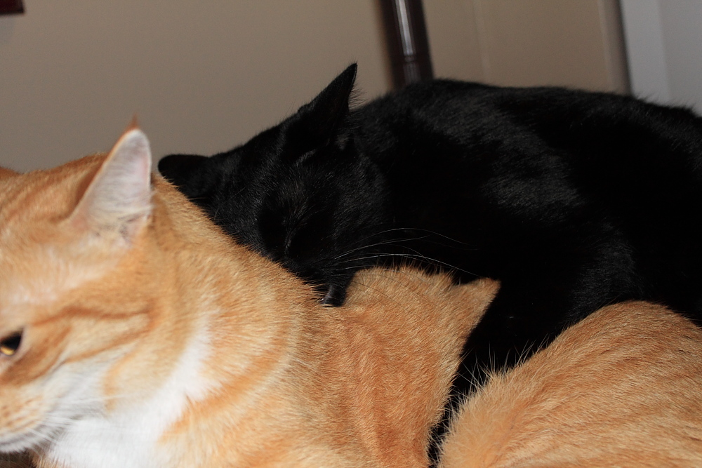 A few times a week I catch Chris holding Puck down by the scruff of the neck. I assume he does that to remind him who’s boss. On the other side of the coin Chris will also lie down next to Puck and wash his face and ears. I think he expects Puck to do the same for him, and sometimes Puck does, but other times he gets up and leaves.