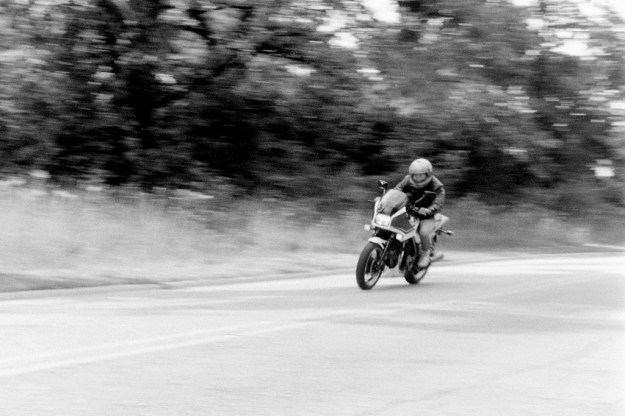 Sometimes you want the blur. A good example would be when you are tracking a moving object across your field of view and you want to convey a feeling of movement in the image. The photo below is an image I took years ago of my friend riding by on his motorcycle.