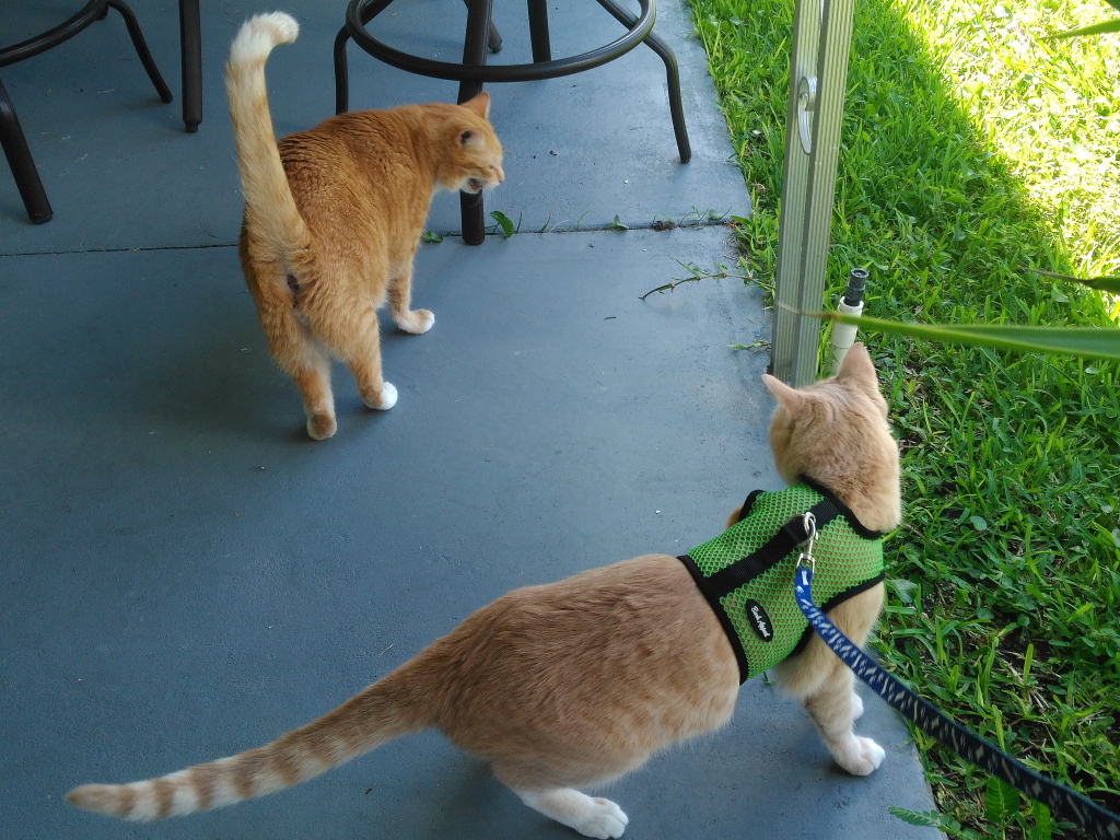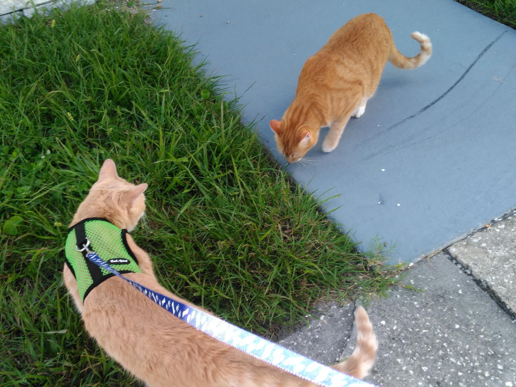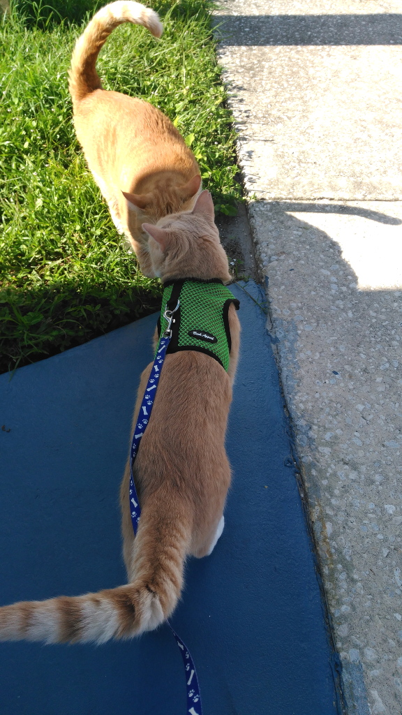 I think it’s good for our cats to get outside, but it always seems to be a pain in the butt as well.