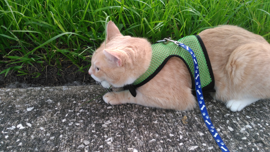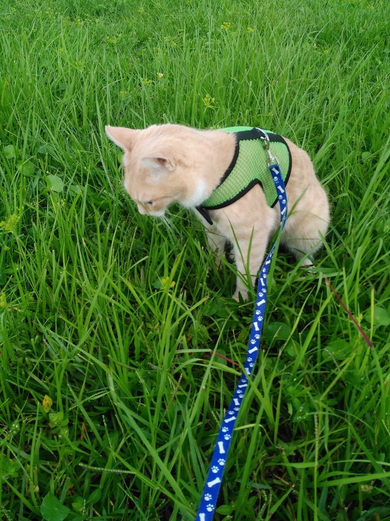 Frankie was being very vocal on Saturday about wanting to go outside so I decided to take him for a walk. Rose took out the cat harness and leash and said things like “Oh boy Frankie, you’re gonna go outside!” That got him all riled up but I wasn’t ready yet. I still had to find my shoes and put them on, which surely was an excruciatingly long time for Frankie.