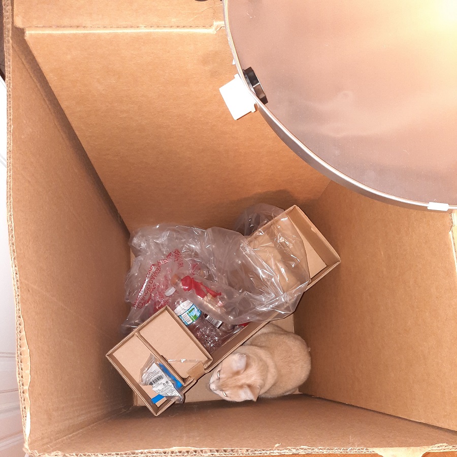 It’s amazing how much better Frankie fits in the box than Chris does. I suppose we need to buy bigger stuff in the future.