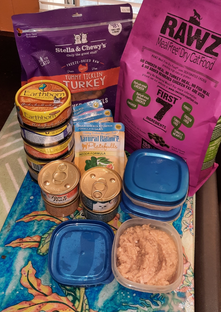 The raw food is the food the cats like best and usually lick the bowls clean. A couple of years ago that was the only wet food that I gave them but they got tired of it and I ended up throwing a lot of it away. So even though I would like to give them only raw food, I have to play the hand I was dealt.