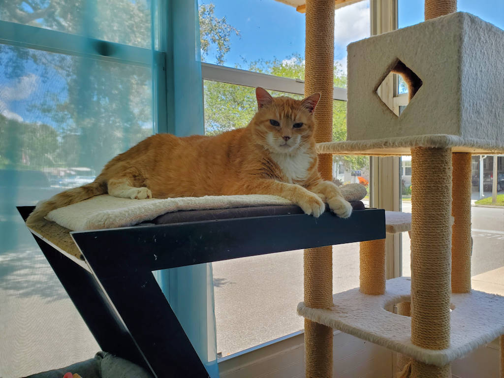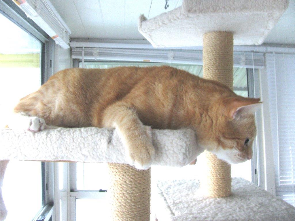 It seems a waste of a good cat tree to hang out at the very bottom but perhaps he was just enjoying the velvety softness of the carpet. It is amazingly soft compared to the carpet on our other cat tree.