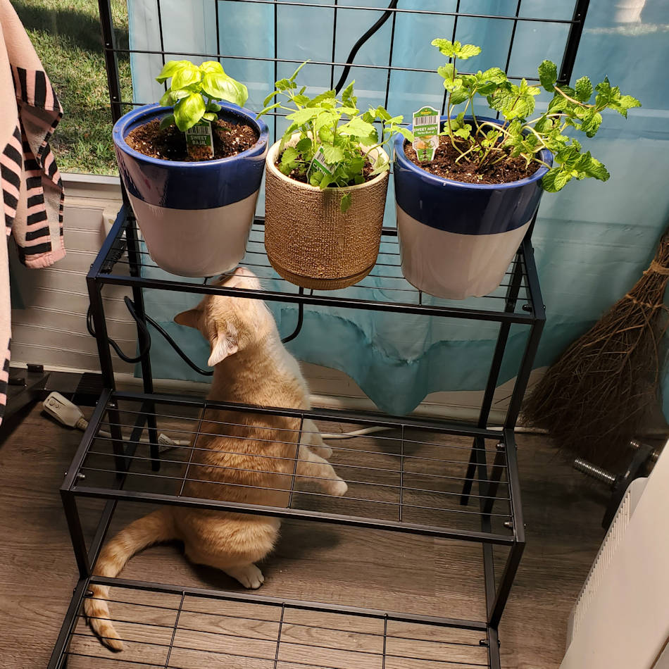 After a little while, I put the catnip plant outside. I also put a bungee cord around the other plants.