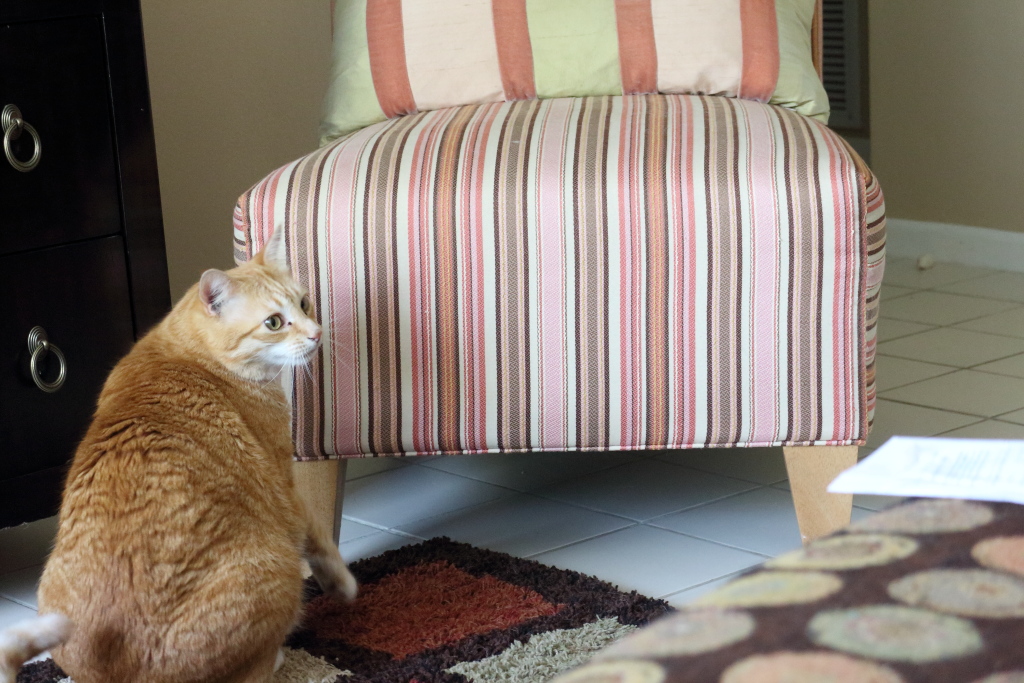 One day I put a pillow on the new chair and put Chris on it and he stayed there. He was right next to me and I was able to pet him while I worked so it was all good. Now when he is annoying, like he is now while I am writing this, I can move him to the chair.
