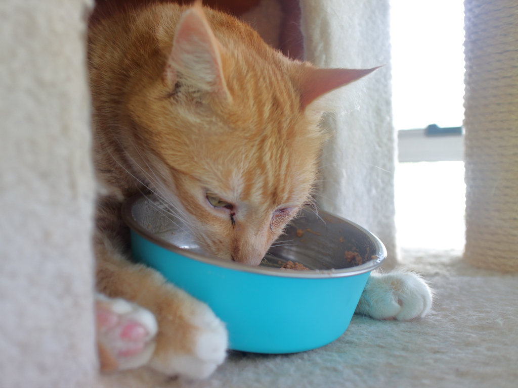 Floki has his own bowl but it really is every cat for himself. I sometimes put Floki’s bowl on the table so Chris won’t make a pig out of himself and eat all the dry food. I have to stop doing that, though, because it annoys my wife.