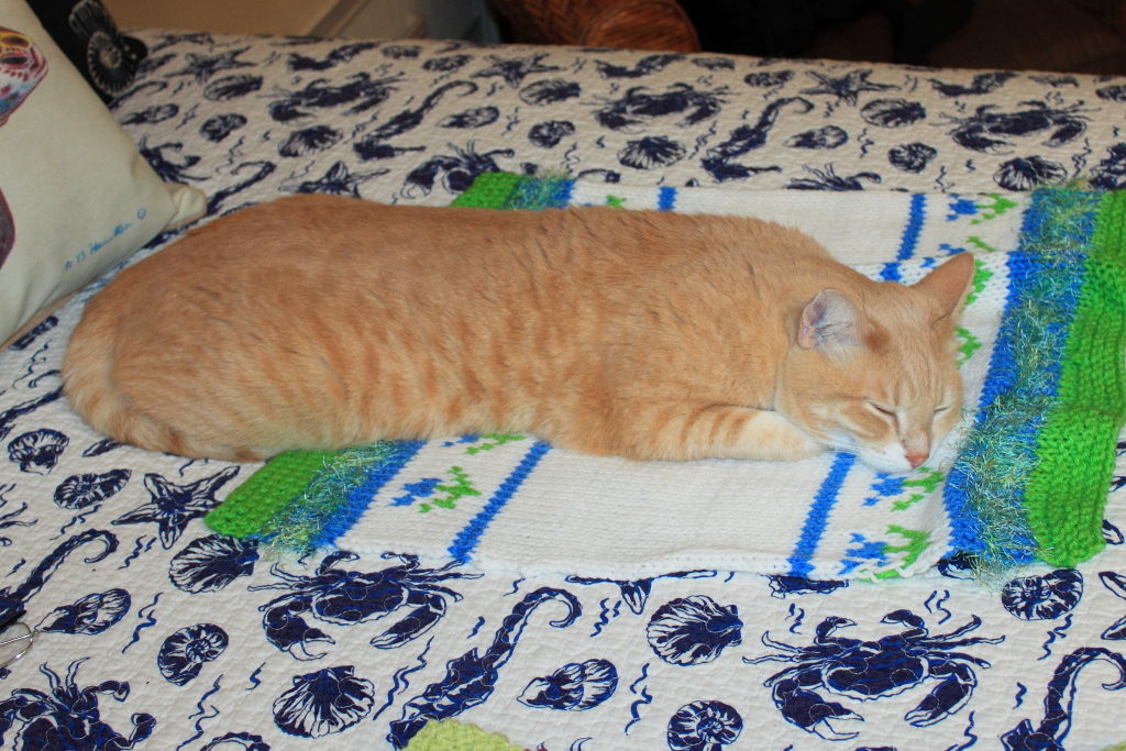 Inside the box were some lovely, handmade blankets, two with a gold cat and one with a black cat. One each for Chris, Frankie and Puck.