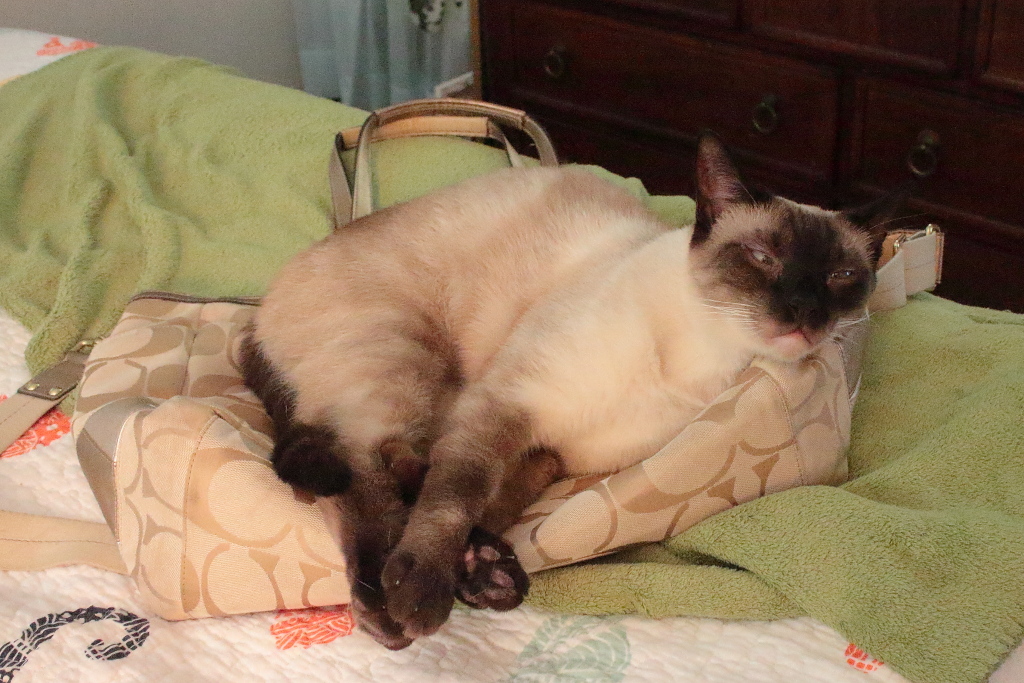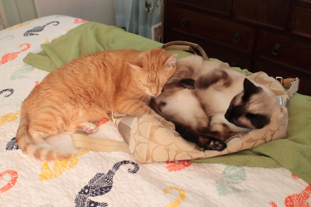 Since Chris died, we don’t see the cat piles like we used to, but sometimes we take what we can get. If Chris were here, he would be in the gap, touching both of them.