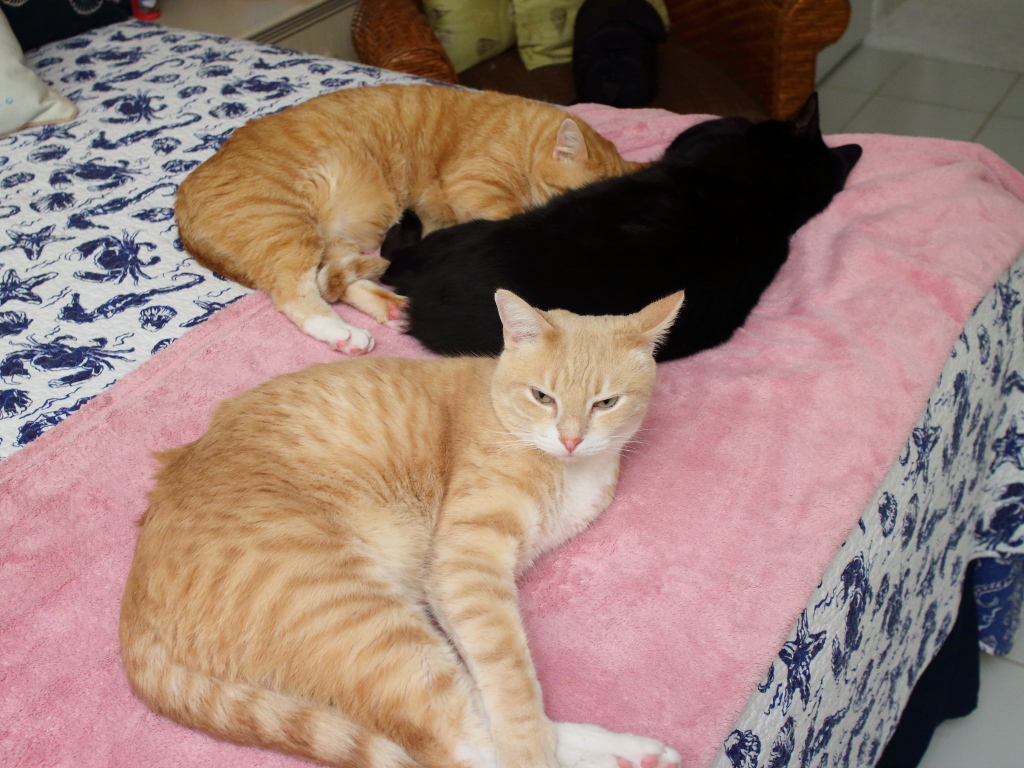It is rare to get a photo of three of our cats playing nice. Photographing all four together like that would be like capturing a flying unicorn alongside his pet dragon.