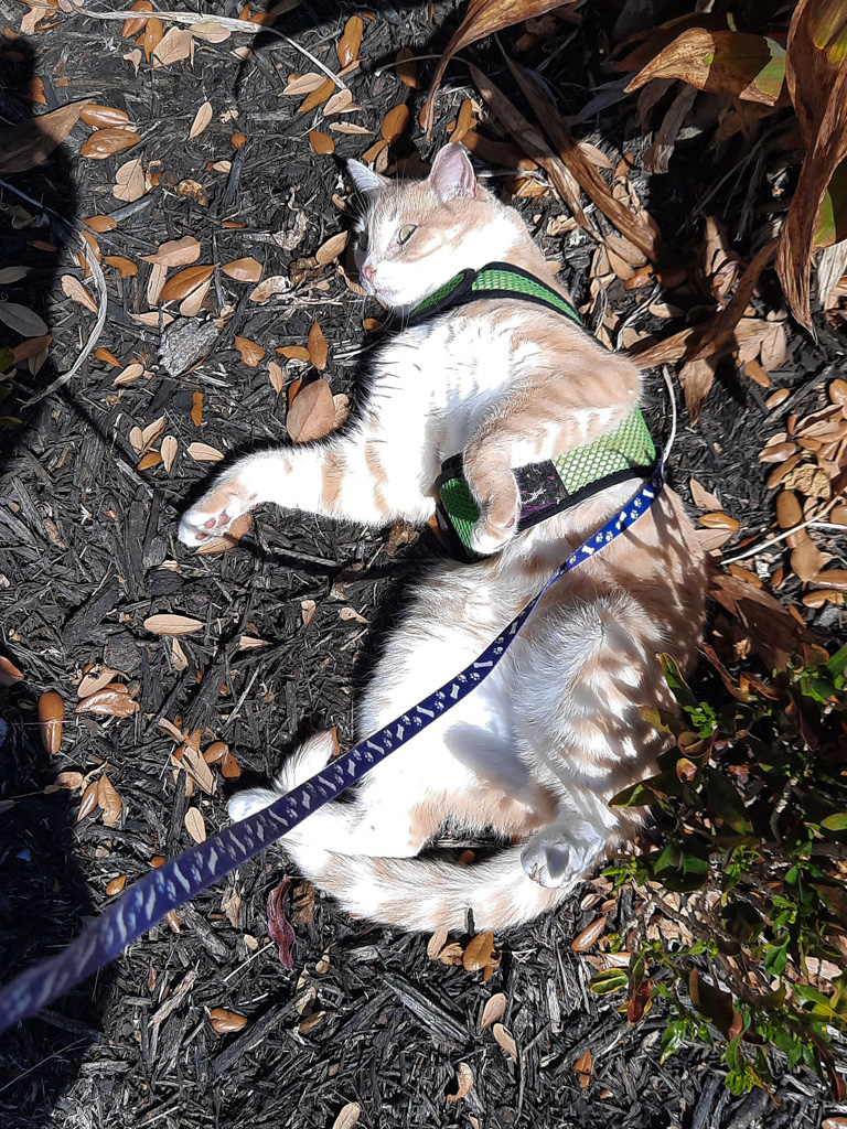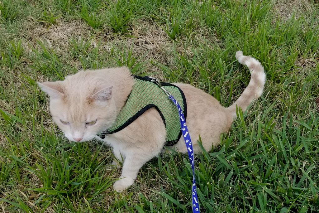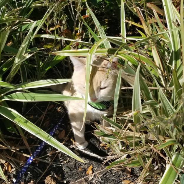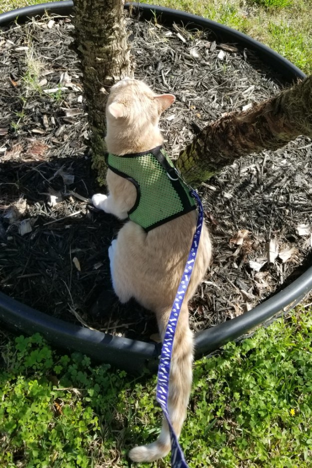He then does a little exploring but he usually stays close to home which is why he doesn’t need a harness, although I still need to watch him because he sometimes wanders away.
