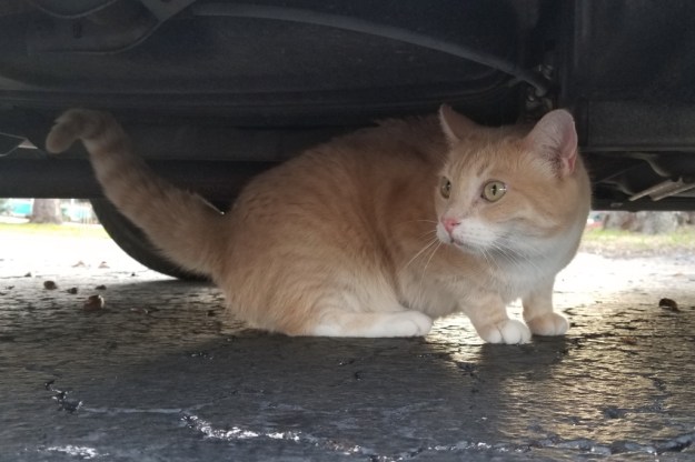 When I brought Chris inside, I planned on getting Frankie’s harness but Frankie had other ideas and bolted out the door. He then hid under a car where I couldn’t catch him.