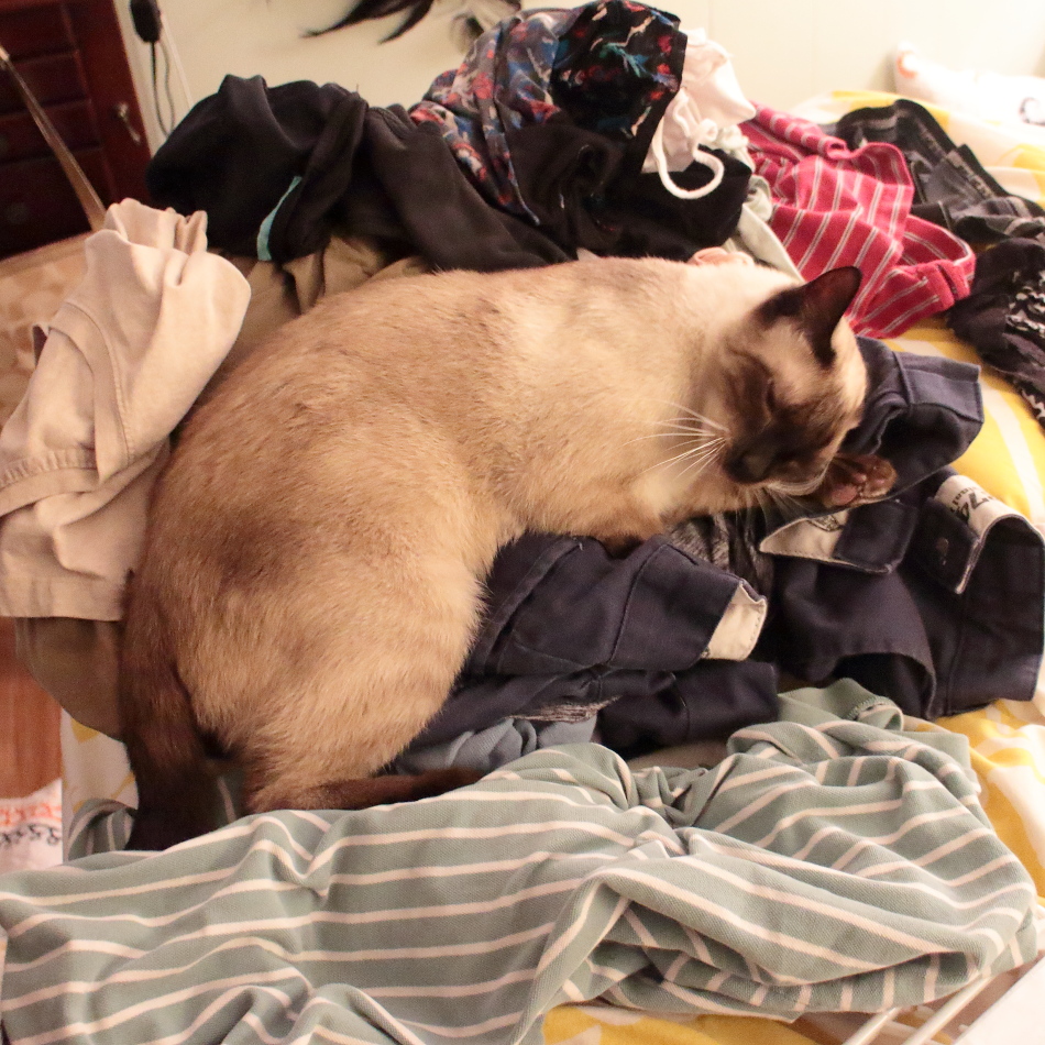 It is nearly impossible to bring laundry inside and fold it before one or more cats choose to lie on top of it.
