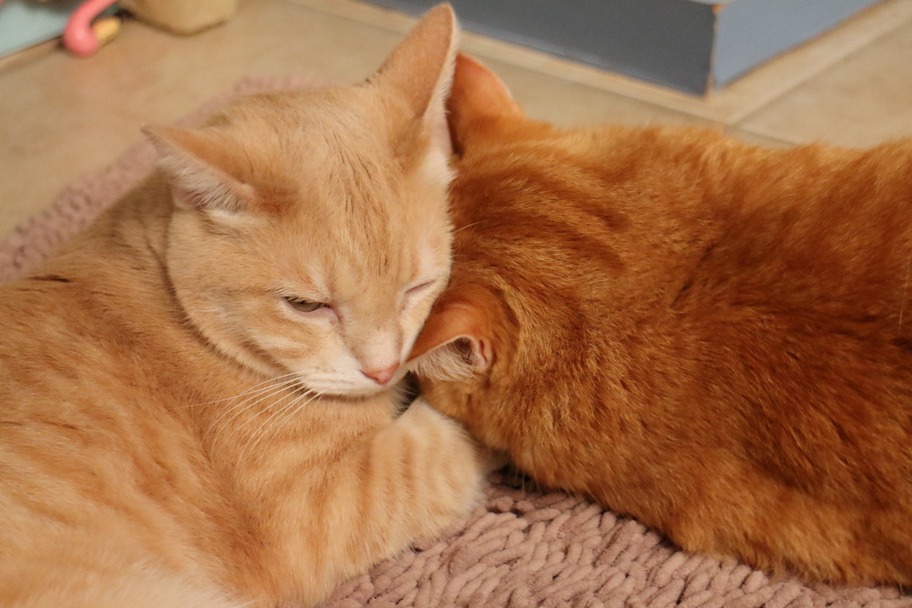 Historically, none of our cats have been very affectionate with other cats. The exception to that would be Tigger. He sometimes would be seen cuddling with Abbey or her brother Alex.