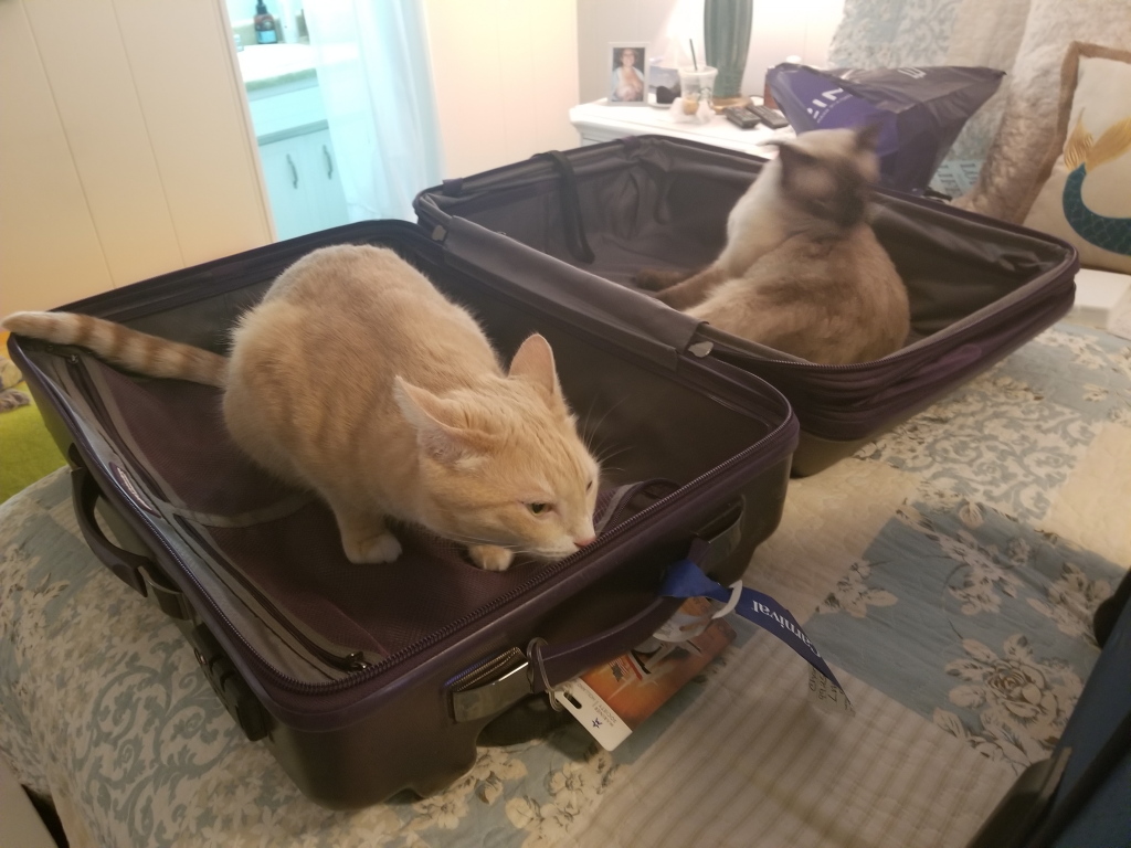 We returned from our eight-day cruise late Sunday afternoon and the cats were very happy to see… our luggage.