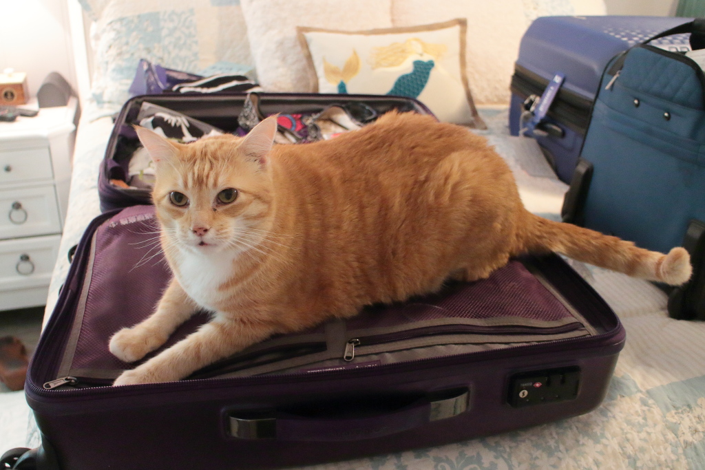 While I was packing, Puck did what cats always do when a suitcase is out, he climbed inside.