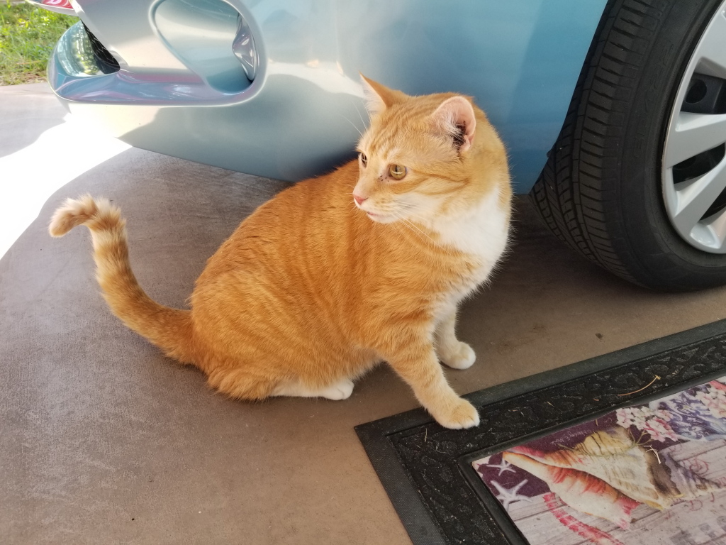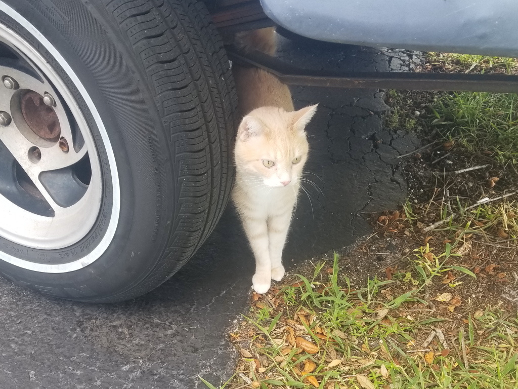 When it finally was Chris’s turn to go outside, he did his usual things, lie on the driveway, eat grass, etc. When it was time to go in he did something he has not done since teaching the move to Frankie, he went under my truck to avoid capture.