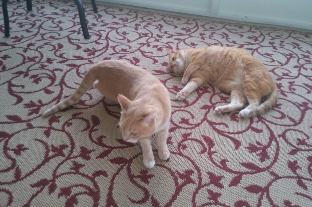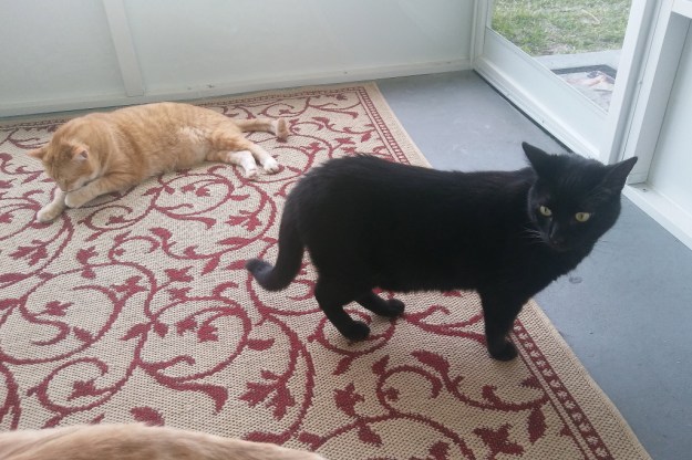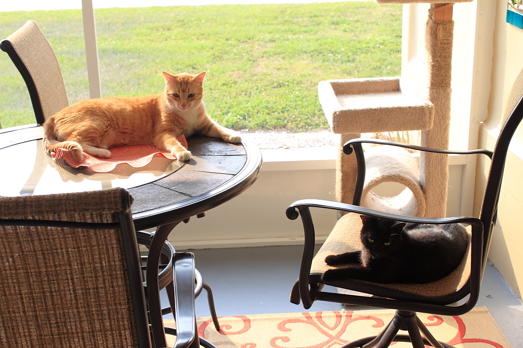 I ran back inside to put my shoes on and when I returned both cats were still hanging out in the backyard.