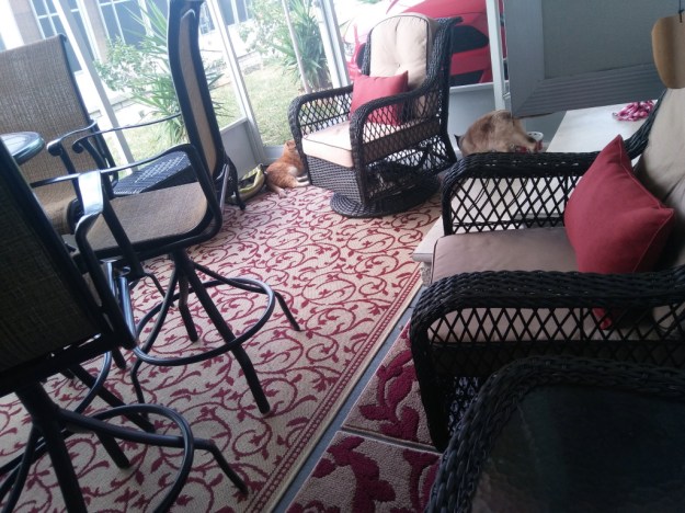 When I got home Frankie was on the catio. I was puzzled. How did he get back inside? I was pretty sure he couldn’t open the door. That was Chris’s specialty.