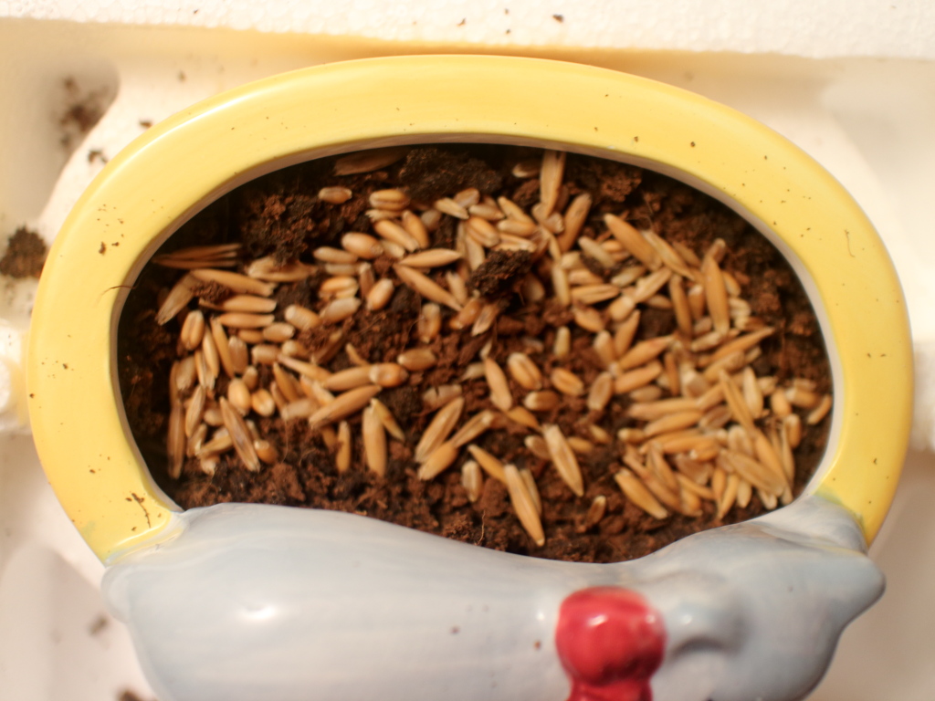 It comes with everything you need: a bowl with a cat on it, potting soil, seeds and instructions.