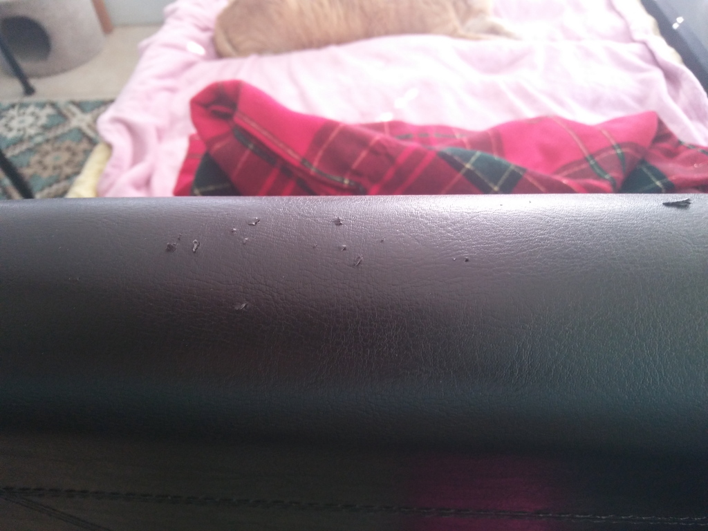 I was very hopeful when I went to bed and was happy to see that everything was normal when I woke up. It didn’t stay that way. About and hour later I smelled pee and found pee next to the chair, half on the pee pad and half off, where it could get under the pad and have no chance of drying It was the third time that has happened since I bought the pads. I also found poop behind Rose’s chair. It looked like Puck pulled the pad away from the wall far enough so he could poop directly on the floor. Why does he have to make things so difficult for me?