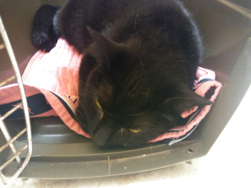 That definitely wasn’t good so I called the vet when they opened at 7:30. They said to bring him in at 8:20. I had to get a step stool to reach him and at 8:00 I pulled him down and put him in his carrier.