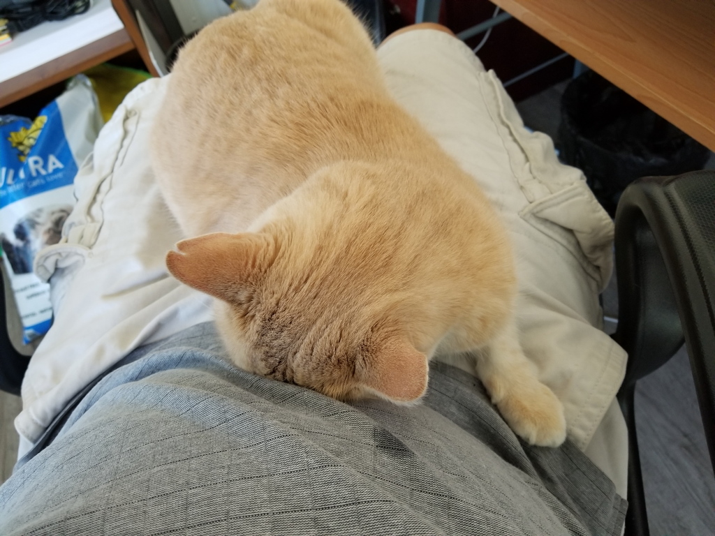 Lately, Frankie is on my lap almost as much as Chris is. One of the things he likes to do is nap with his face pushed into my stomach.