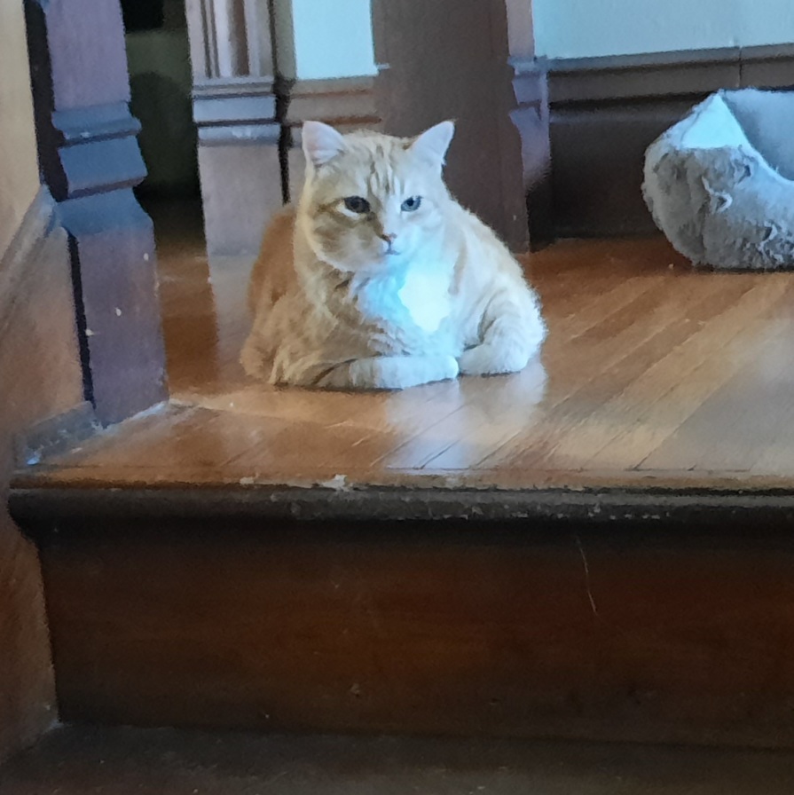 I also noticed that sometimes when Chris gets off my lap, he doesn’t land gracefully like a cat but seems to stumble. I am concerned that maybe he is getting arthritis or is in pain for another reason. My concern is that he just all of a sudden stopped coming down the stairs. That tells me that something got worse pretty quickly.