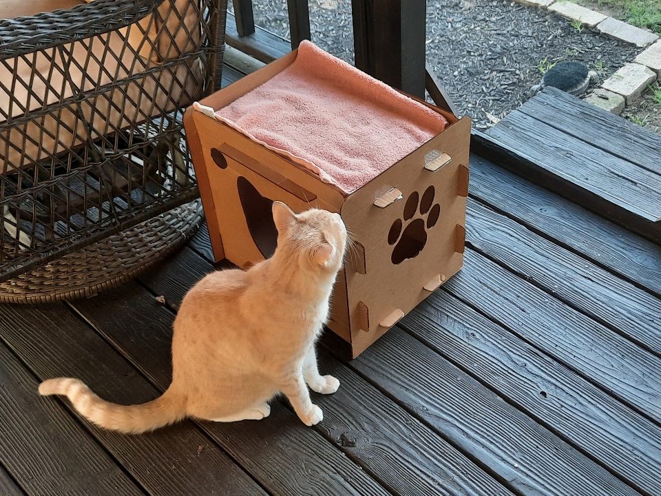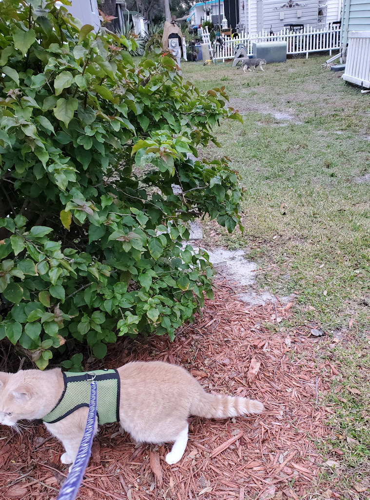I saw two more cats show up as people started eating. This one was getting attention from a human and another cat.