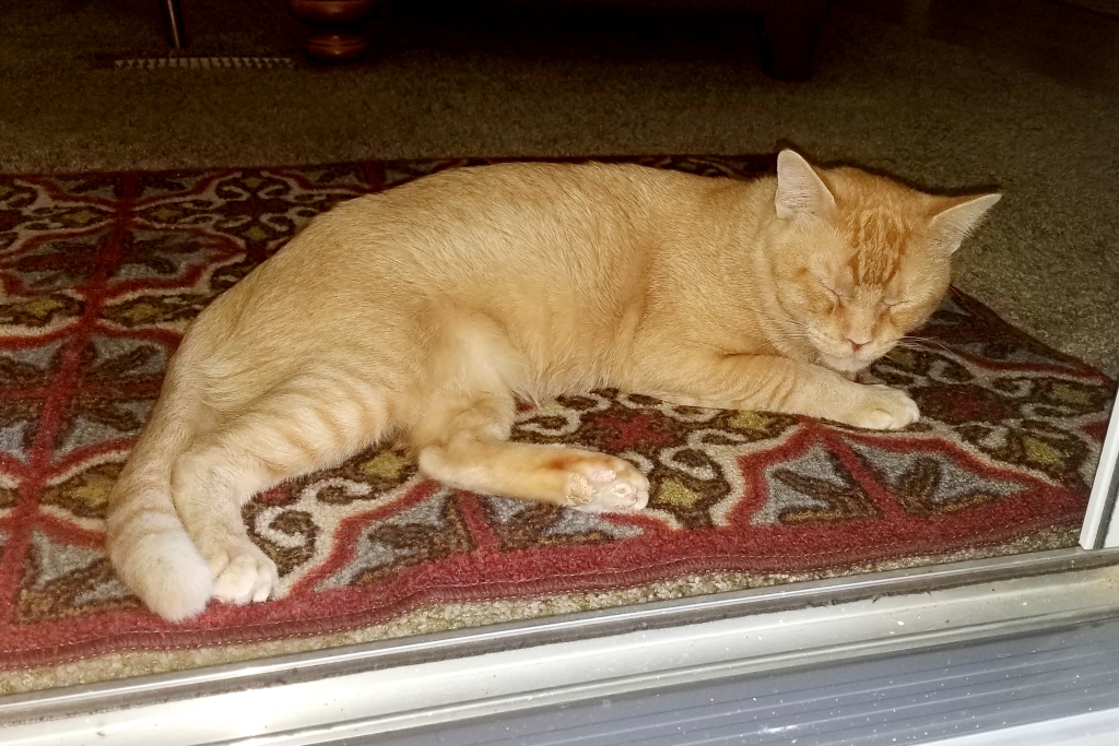 My wife’s sister and her husband have several of their own cats and take care of strays as well, both near their home and near her work. When we stayed there during Hurricane Irma, there were three strays that stayed in the garage. The morning after the hurricane I captured this picture of one of them hanging out by the front door.