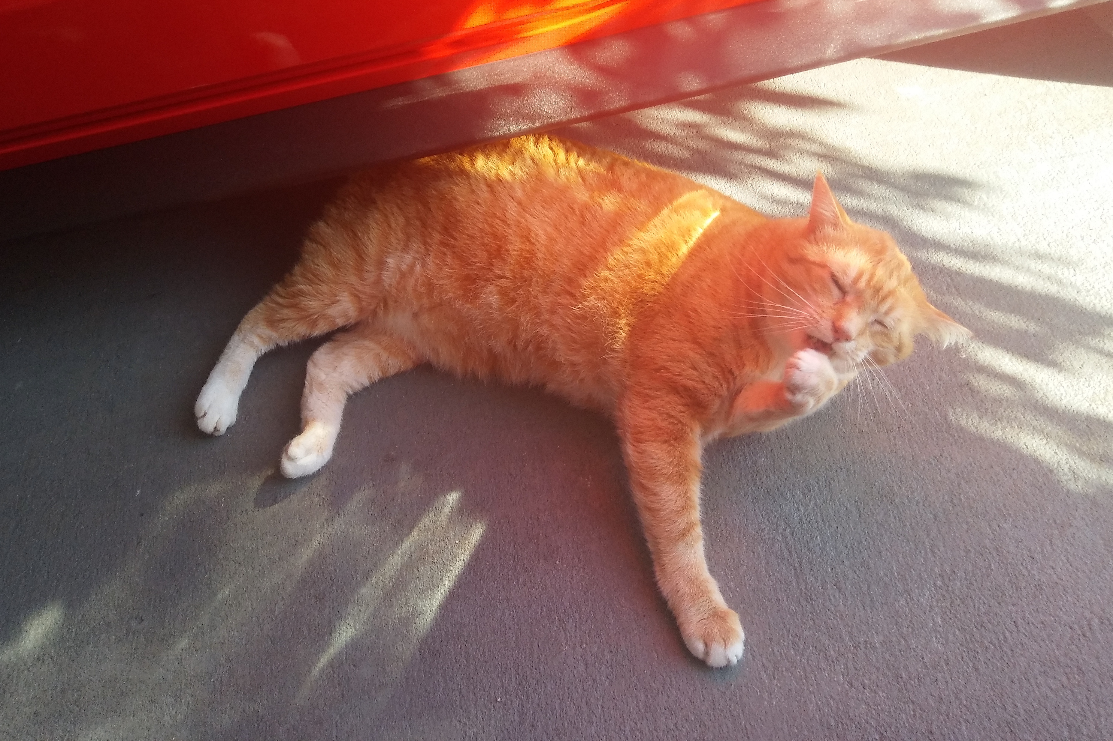 Sometimes cats lie down on the most uncomfortable looking beds.