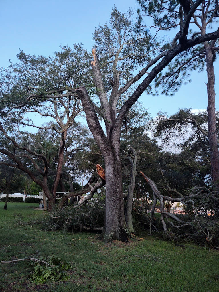 The next morning, my wife wanted to go to the beach to look for shells, which are plentiful after a storm. We went outside before the sun came up, around 6:45. Even at that time I could see tree branches, big and small, scattered about our yard.